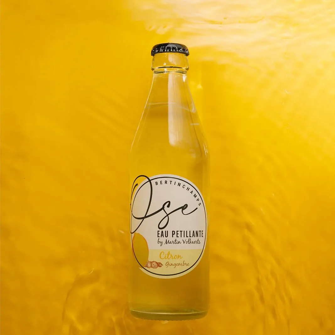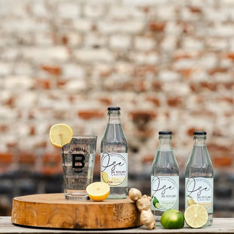 BIO Belgian Sparkling Water Flavored Glass Bottle 33cl Ose Lemon Ginger Carbonated Acqua Frizzante Gassata Ground Source OEM